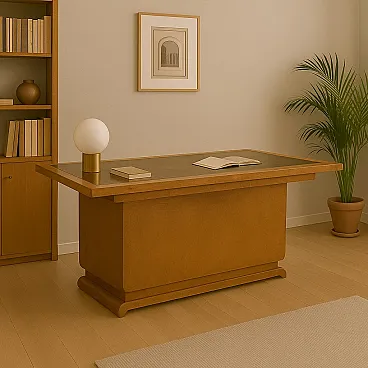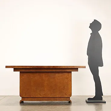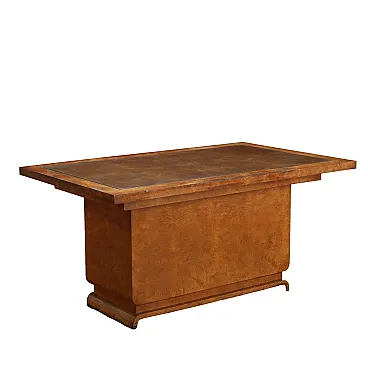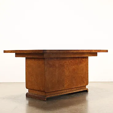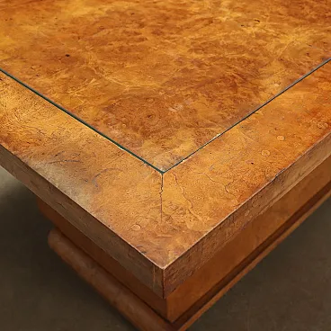 Scrivania Decò in radica di noce e vetro, anni '30