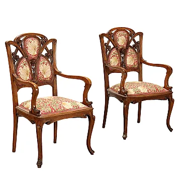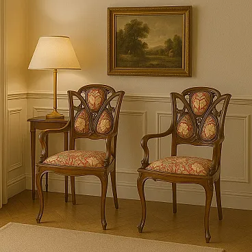 Coppia di Poltroncine Liberty imbottite e scolpite, primi '900