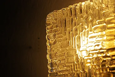 La lampada combina lo stile vintage con la sottile eleganza tipica del design degli anni Sessanta e Settanta. Progettata per diffondere la luce in modo impressionante, è perfetta sia per l'illuminazione funzionale che per quella decorativa. Vetro trasparente, spesso e modellato a mano. Struttura distintiva che ricorda un blocco di ghiaccio Il vetro è trasparente, ma grazie alla sua texture diffonde delicatamente la luce, creando un morbido gioco di ombre e riflessi. La lampada può essere montata a parete o a soffitto. L'apparecchio è dotato di fori per il montaggio. Il plafond è dotato di un punto luce con portalampada in ceramica.