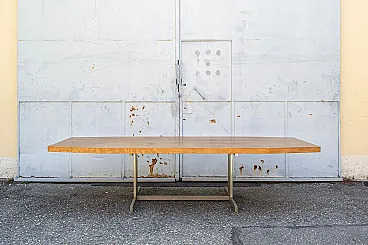 Tavolo da riunione grande in acciaio nichelato e legno, anni '60