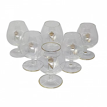 Bicchieri Vintage Amazing Baccarat Napoleon, anni '60 Superba serie di 6 bicchieri da cognac in cristallo a forma di palloncino con motivo dorato. Attributi di Napoleone: 'N' dorato L'oggetto sono in buone condizioni qualche segno di invecchiamento su di esso.