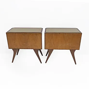 Coppia di comodini in noce e radice di Thuja, anni '50