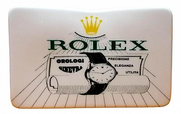 Insegna luminosa originale orologi Rolex anni '50 di negozio concessionario, realizzata in plexiglass su cassonetto in plastica. Misura cm 26x16, spessore circa 9 cm, in condizioni di conservazione ottime, come da foto, ancora perfettamente funzionante con impianto elettrico originale dell'epoca.