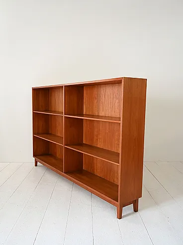 Libreria vintage in teak degli anni ’50/’60. Sei vani a giorno e struttura essenziale, tipica del design nordico.