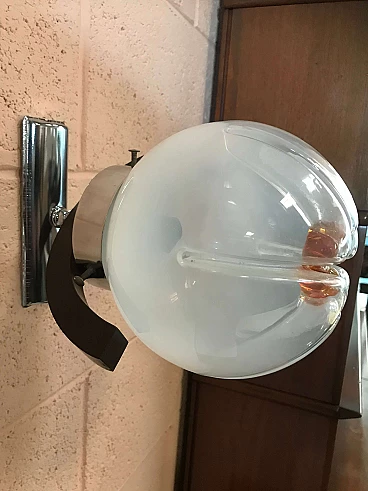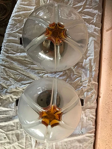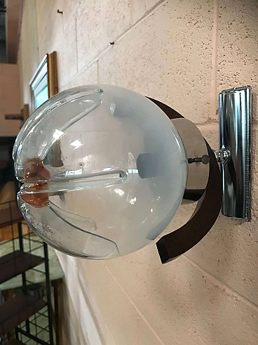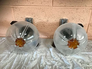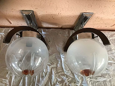 Coppia di appliques in Vetro di Murano, metallo cromato a legno, anni ’70