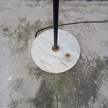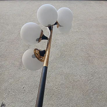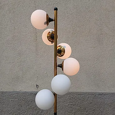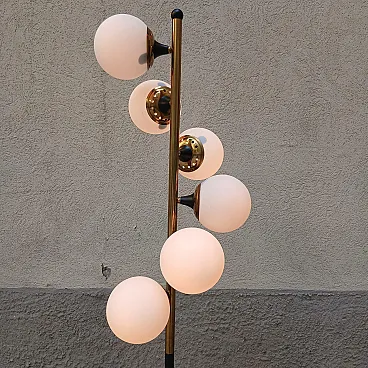 Questa raffinata piantana firmata Stilnovo Milano è un magnifico esempio del design italiano degli anni ’50, dove innovazione formale ed equilibrio estetico si fondono in un linguaggio visivo unico. La struttura, snella e scultorea, è caratterizzata da sei diffusori sferici in vetro satinato opalino, disposti a spirale attorno a uno stelo centrale in metallo verniciato nero con dettagli in ottone lucido. Ogni globo emana una luce calda e avvolgente, creando un effetto scenografico e sofisticato, perfetto per ambienti moderni, vintage o eclettici. La base circolare in marmo bianco dona stabilità e un’eleganza intramontabile, e ospita un raffinato interruttore in ottone integrato, perfettamente incassato nella superficie. L’impianto di accensione è a tre stadi: con ogni click è possibile selezionare un diverso livello di illuminazione – da una luce soffusa con due sole sfere accese, a una media intensità con quattro, fino alla massima luminosità con tutti e sei i globi attivi. Una funzionalità che unisce praticità e atmosfera, adattandosi alle diverse esigenze dello spazio. Note sull’azienda: Stilnovo Milano Fondata nel 1946 da Bruno Gatta, Stilnovo è stata una delle realtà più innovative nel panorama del design italiano del dopoguerra. Attiva principalmente tra gli anni ’50 e ’70, l’azienda si è distinta per la produzione di lampade dal linguaggio moderno, sperimentale e raffinato, collaborando con alcuni dei più importanti architetti e designer del periodo, tra cui Achille e Pier Giacomo Castiglioni, Joe Colombo, Ettore Sottsass e Gae Aulenti. Stilnovo ha contribuito a definire l’estetica del “mid-century modern” italiano, promuovendo un design funzionale ma mai banale, capace di coniugare rigore industriale e poesia della luce. Le sue creazioni sono oggi considerate vere e proprie icone da collezione, presenti nelle principali gallerie e musei di design internazionali.