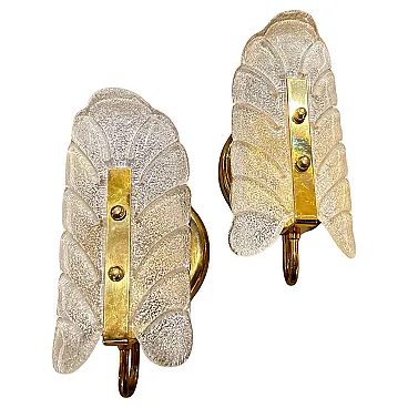 Coppia di applique in ottone e vetro di Murano stile Barovier anni '70