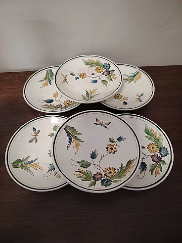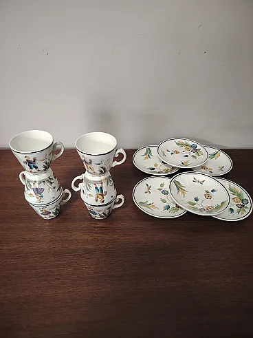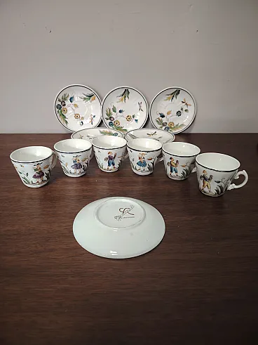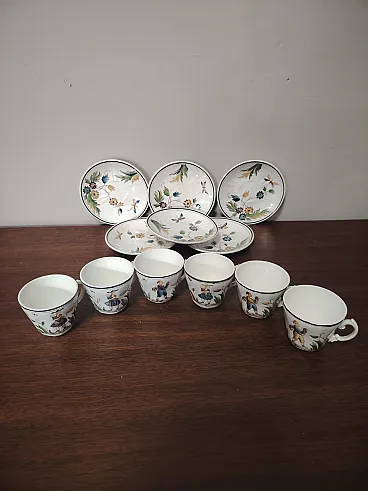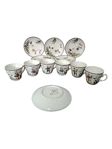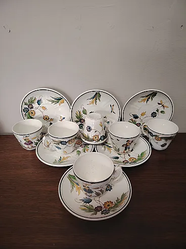 Raro servizio da caffè composto da sei tazzine e sei piattini in ceramica degli anni 30, disegnati da Gio Ponti per San Cristoforo Richard Ginori. Ottime condizioni generali vintage, lievi segni d'uso del tempo.
