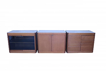 Set di 3 cabinet modello 4D disegnati da Angelo Mangiarotti, produzione Molteni in legno di noce con top in marmo. set composto da: cabinet a vetrina, cabinet con casssettiera e cabinet ad ante.
