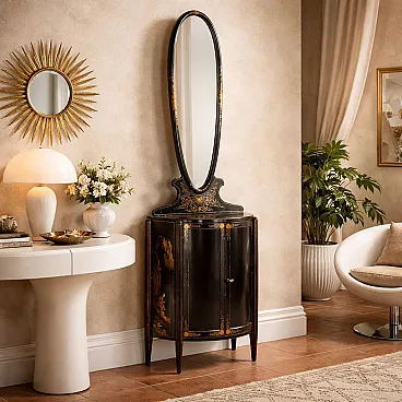 Vetrinetta a semi cerchio con specchio in stile Chinoiserie, '900