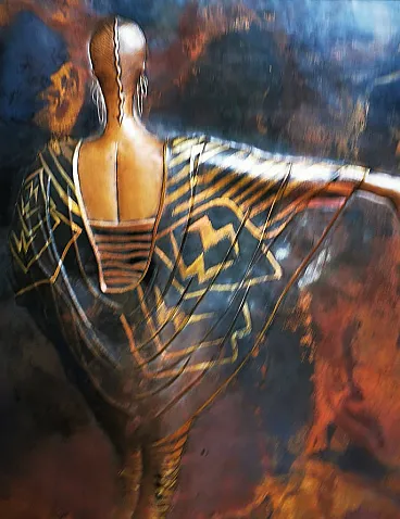 Pannello Fashion-Moda, sbalzo su rame, ZAIRE anni '80