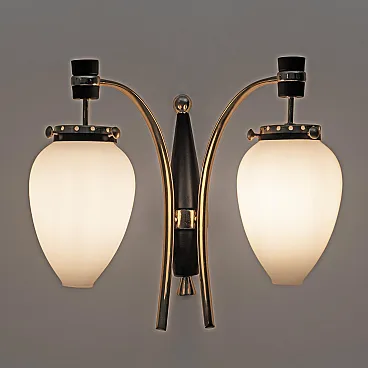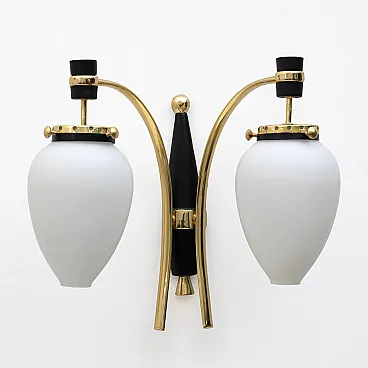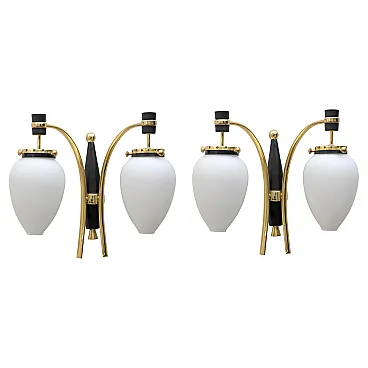 Coppia di applique in ottone e vetro di Stilnovo, anni '50
