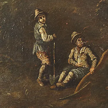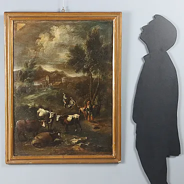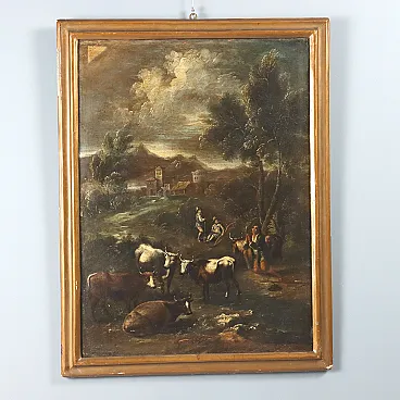 Paesaggio con Figure e Mandria, olio su tela, '700