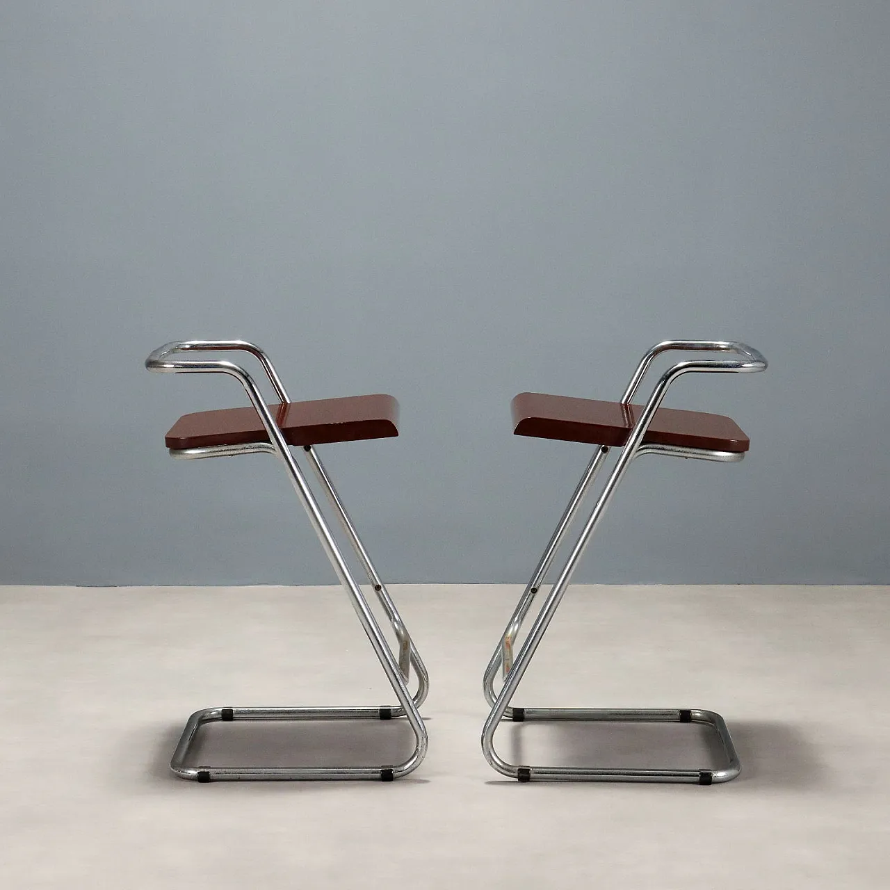 4 Sgabelli in legno laccato e metallo cromato, anni '70