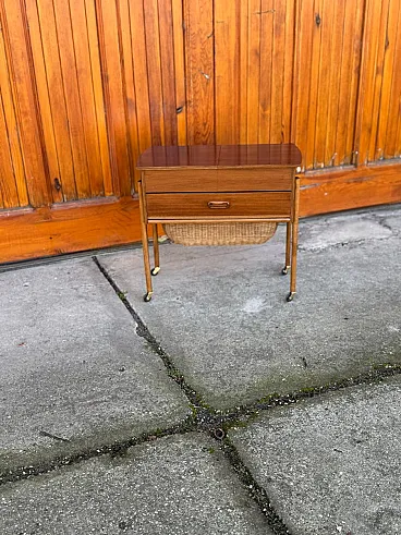 Carrello moderno in teak e vimini, Danimarca, anni '60