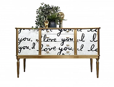 Credenza decorata con carta da decoupage I Love You di Mind the Gap, anni '80