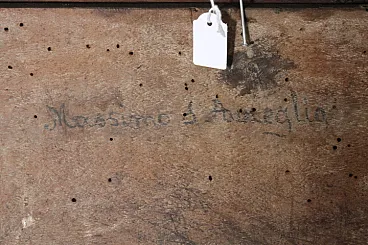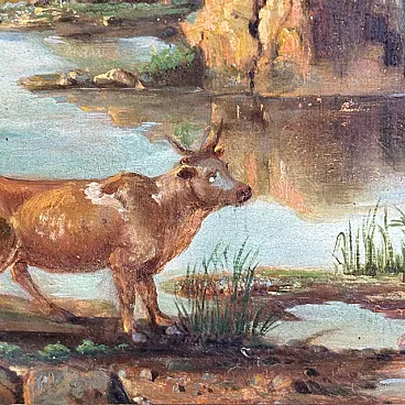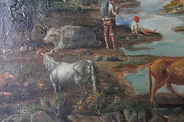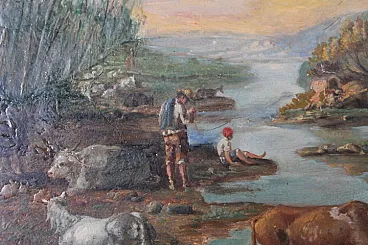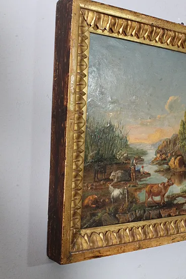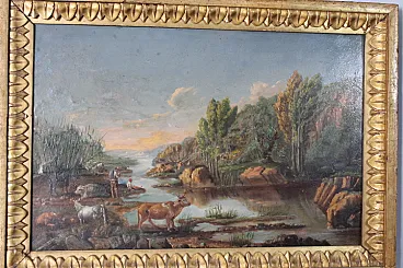 Dipinto di paesaggio olio su tavola in cornice, fine '700