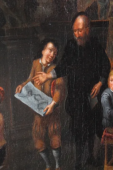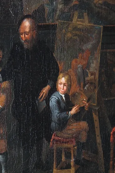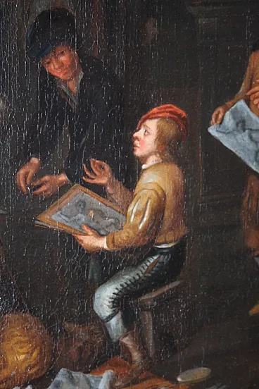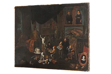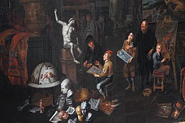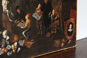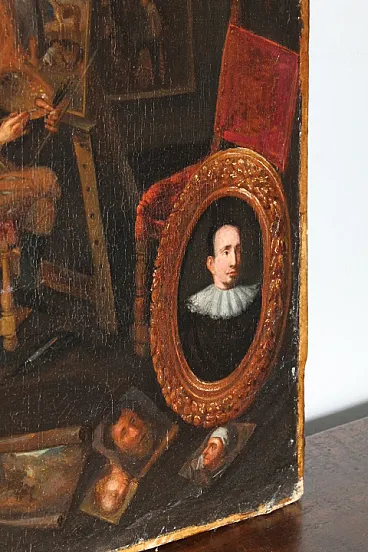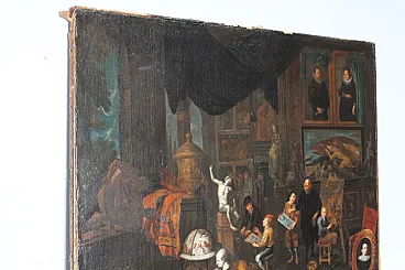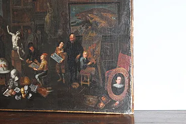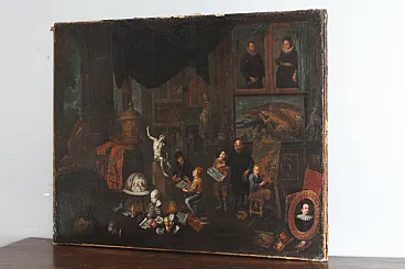 Dipinto olio su tela fiammingo atelier d artista, '600