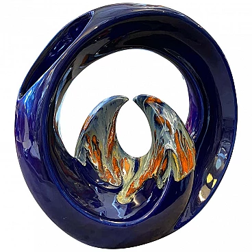 Vaso in ceramica blu realizzato da Roberto Rigon negli anni '70, è firmato sul fondo con doppia R.