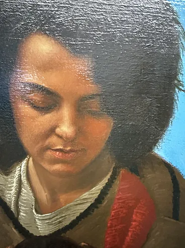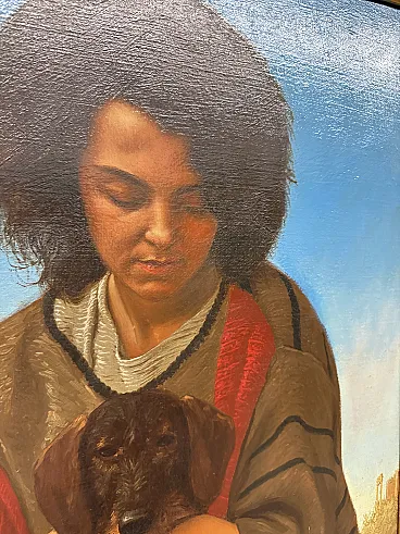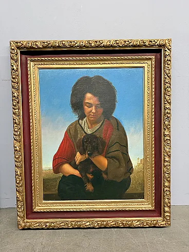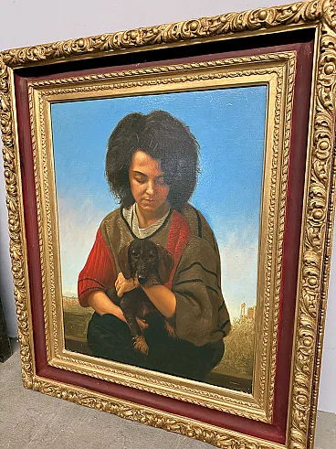 Olio su tela, ragazza e cagnolino di Giancarlo Pignataro, 1987