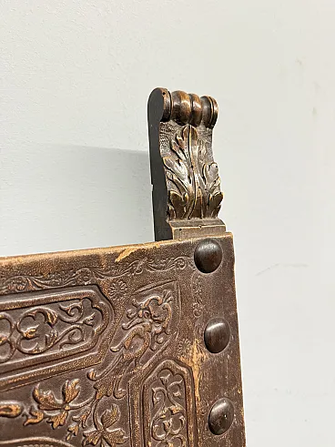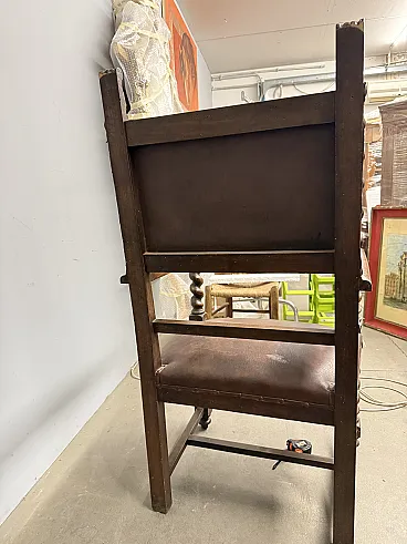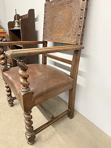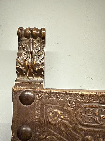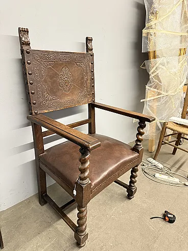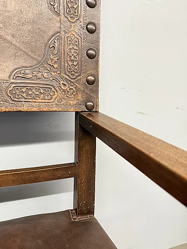 Poltrona neo rinascimentale con braccioli e cuoio stampato, '900