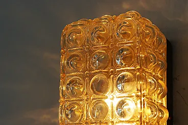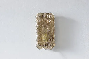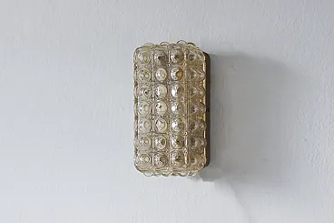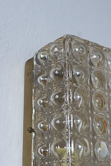 Il plafond degli anni '60 con vetro iridescente e un motivo di bolle geometriche è un esempio vivido di illuminazione decorativa dell'epoca del modernismo, in cui la forma funzionale è combinata con un'estetica originale del materiale e della luce. Questi tipi di plafoniere erano popolari nell'Europa centrale e si inserivano nella tendenza del design funzionale con un'espressione decorativa. L'iridescenza è un sottile strato di ossidi metallici che conferisce al vetro una lucentezza perlacea - iridescente nei toni del rosa, dell'oro, del blu a seconda dell'angolazione della luce. Il motivo delle "bolle" è un motivo geometrico regolare di forme sferiche convesse (simili a bolle) che si ripete su tutta la superficie del vetro. La goffratura del vetro non solo decora, ma diffonde anche la luce, creando un interessante gioco di riflessi sul soffitto e sulle pareti. Il plafond degli anni '60 con vetro iridescente e un motivo di "bolle" geometriche è un classico dell'illuminazione moderna dell'epoca modernista - che unisce praticità ed espressione artistica. La sua struttura tridimensionale in vetro e il suo bagliore iridescente creano un effetto luminoso che conferisce agli interni morbidezza e profondità.