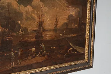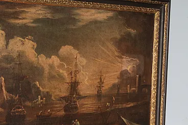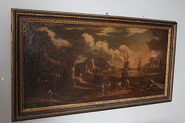 Dipinto Veduta portuale all ‘Alba, olio su tela, '600