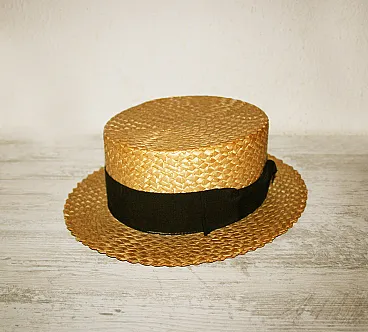 ANTICO Cappello Estivo in Paglia Del 1920, fascia nera / unisex