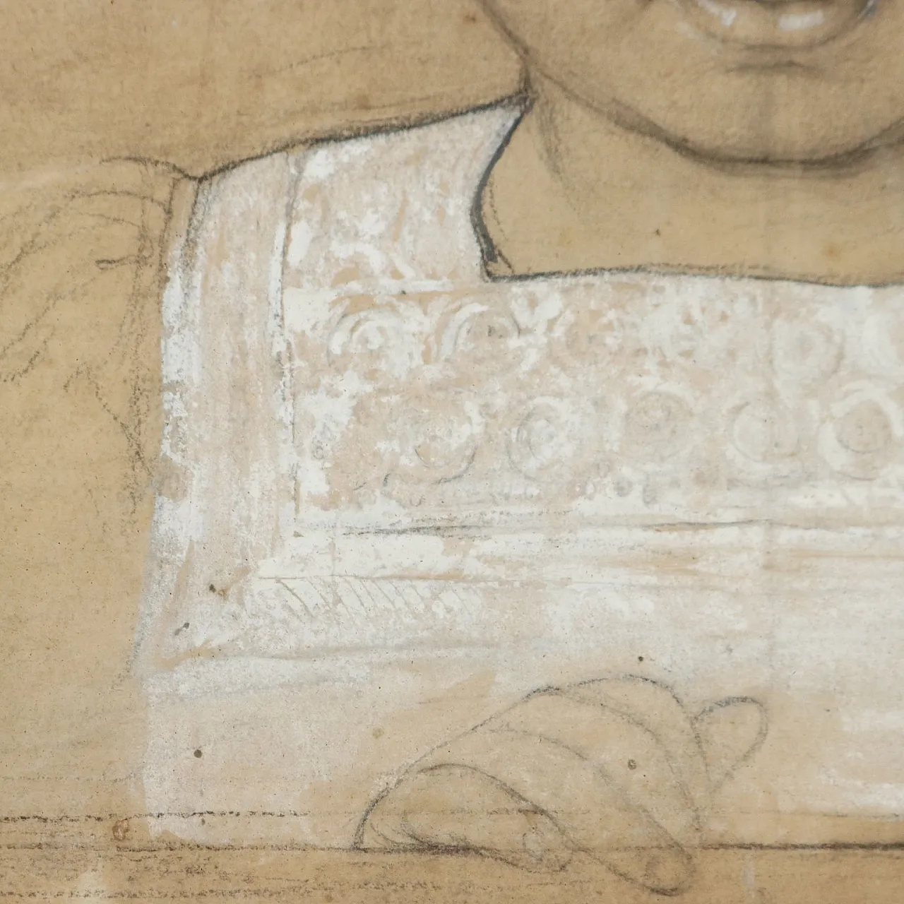 Il ritratto presenta diverse macchie e un piccolo buco della carta.