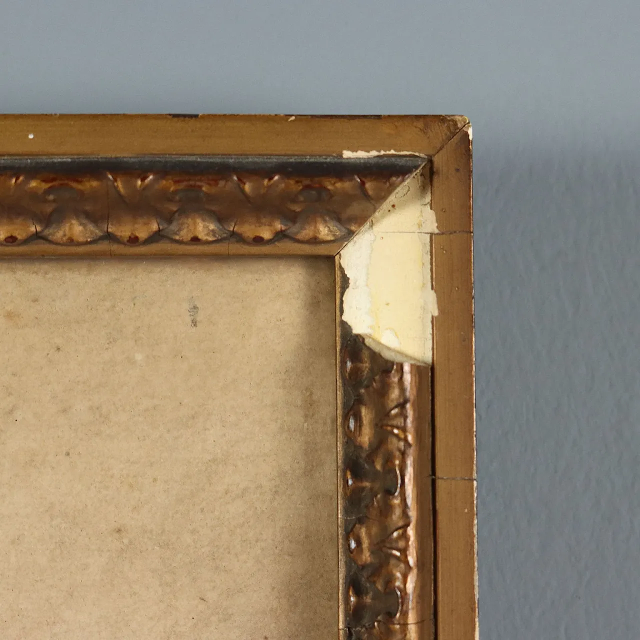 È presentato in cornice coeva, mancante di alcune parti.