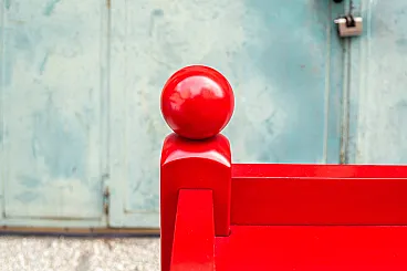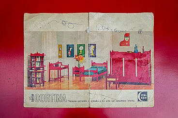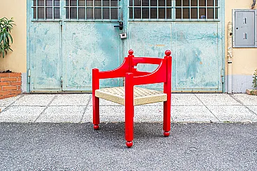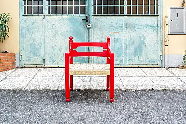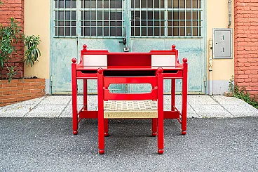Scrivania con sedia in legno laccato rosso, anni '70