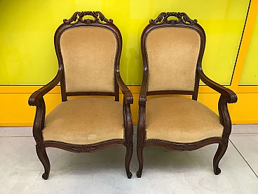 Coppia di poltrone Carlo X in mogano, originali ’800