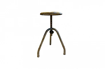 Sgabello Industrial in ferro, Fami, altezza regolabile. Patina autentica. Altezza massima 60 cm. Seduta 30 cm diametro.