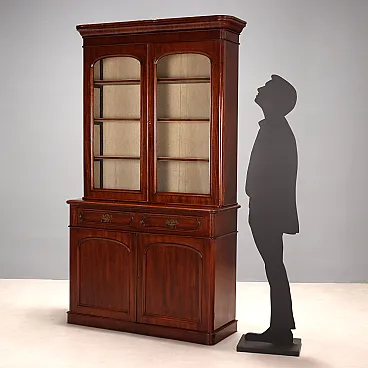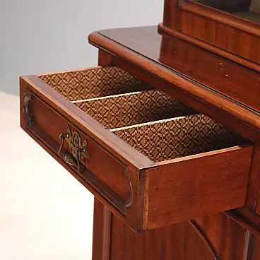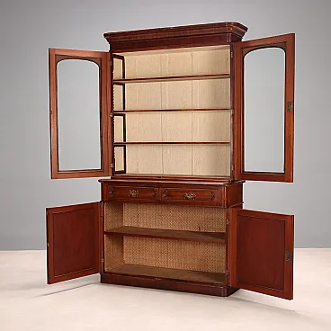 Libreria in mogano con cassetti e mensole, fine '800