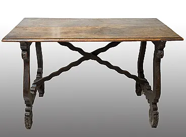 Tavolo da refettorio fratino in massello di noce, Napoli, '700