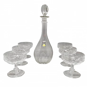 Decanter in cristallo con 6 bicchieri di cristallo, anni '60