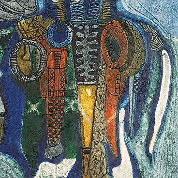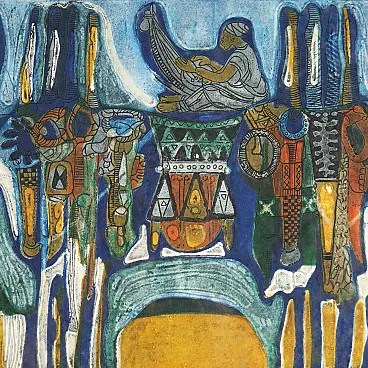 Plastografia (incisione plastica) a colori su carta. In basso a destra la firma, la localizzazione Lagos e la data Novembre 1990. In basso a sinistra il titolo.