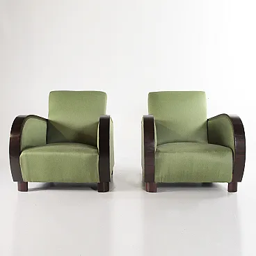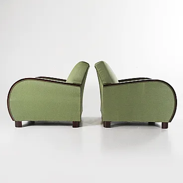 Coppia di poltrone Art Deco in tessuto verde, anni '30