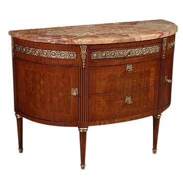 Comò italiano a mezzaluna in stile Luigi XVI, '900
