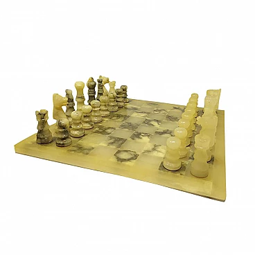 Set di scacchi fatti a mano in alabastro di Volterra, anni '60