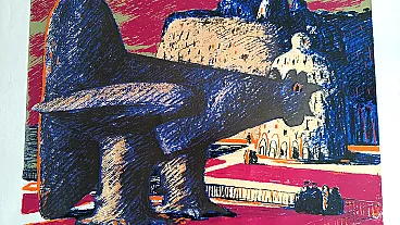 Prova d'autore di Salvatore Fiume, acquaforte a colori, '900