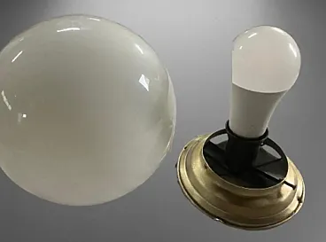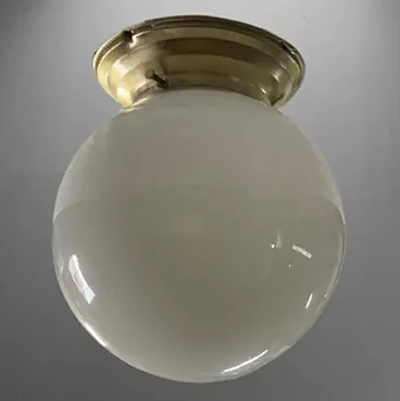 Lampada del soffitto art deco in vetro opale bianco leggero, anni '30
