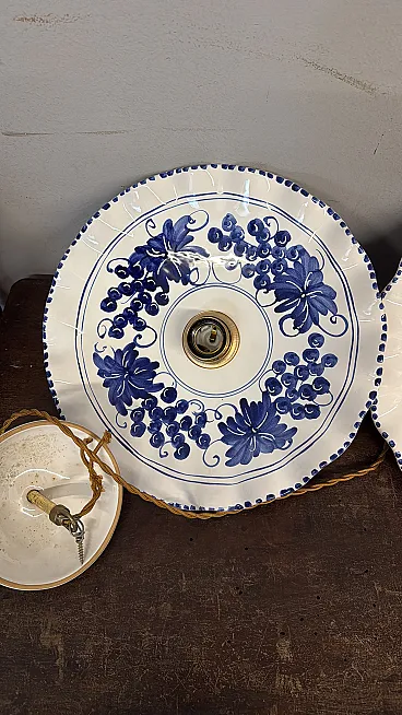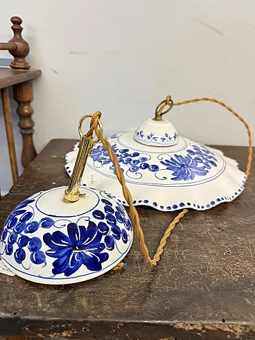 Coppia di lampadari in ceramica dipinti a mano, '900
