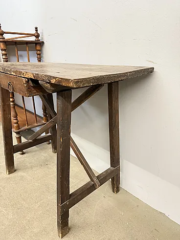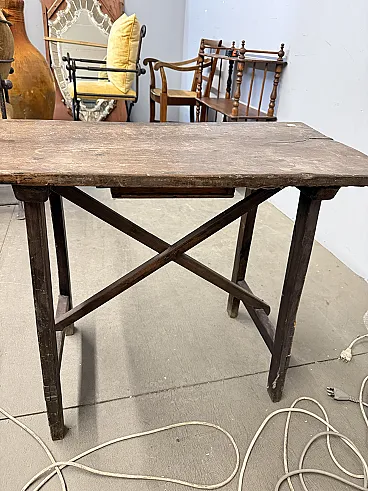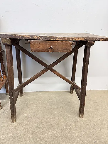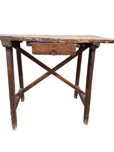 Antico tavolinetto a capretta noce e castagno, '700, 82x62cm. Buono stato, non restaurato, cassetto centrale in patina.