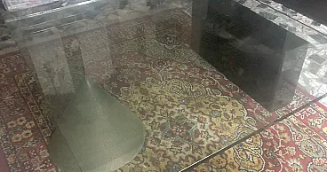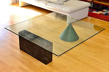 Il tavolino Kono, progettato dai famosi designer Massimo e Lella Vignelli per Casigliani, è un mobile di grande impatto che esemplifica l'approccio modernista dei Vignelli al design. Questa rara versione è composta da un piano in vetro e da una base rettangolare e conica, realizzata in travertino e rame. Massimo e Lella Vignelli erano una coppia di coniugi noti per i loro design minimalisti e funzionali. Erano figure influenti nel mondo del design, con una carriera di diversi decenni e numerosi premi a loro nome. Il loro lavoro era caratterizzato da un'attenzione particolare alle linee pulite, alle forme geometriche e a una tavolozza di colori sobri. Il tavolino Kono incarna perfettamente l'etica del design dei Vignelli, con la sua forma elegante e sobria e l'uso di materiali pregiati. Si tratta di un mobile versatile che si adatta perfettamente a qualsiasi schema di arredamento, da un salotto modernista a un ufficio minimalista. Il tavolino Kono è una testimonianza del fascino duraturo della filosofia di design dei Vignelli e della loro eredità come due dei designer più influenti del XX secolo.