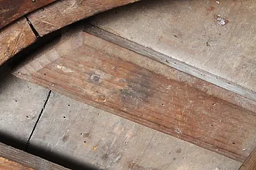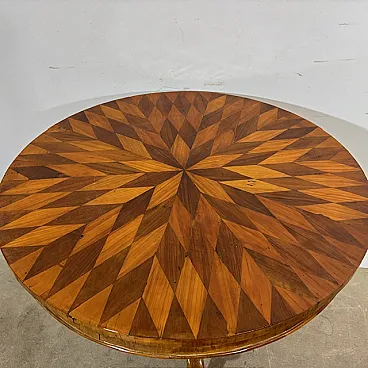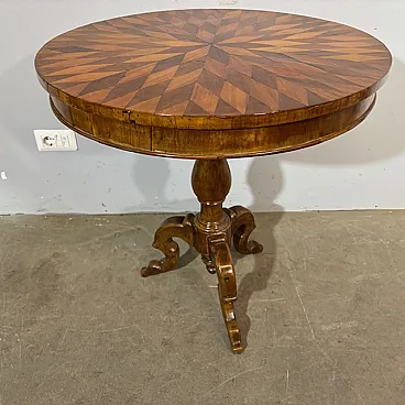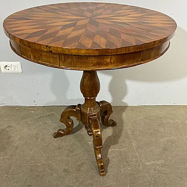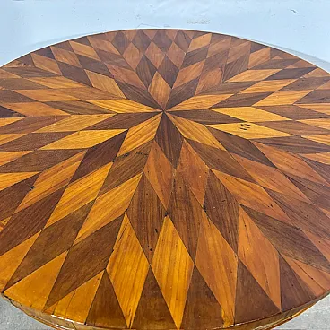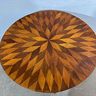 Tavolo tondo noce a Rolo piano intarsiato, primi '800