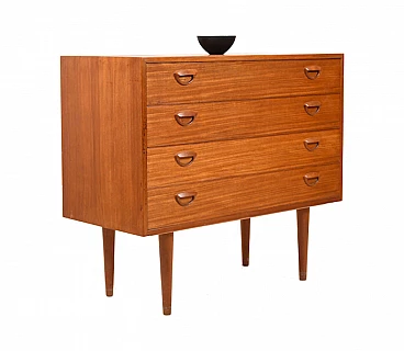 Cassettone danese in teak. Frontale con 4 cassetti. Appoggiata su gambe coniche rotonde. Disegnato da Kai Kristiansen, Danimarca. Pregiata qualità danese. In ottime condizioni, con segni minori di età.