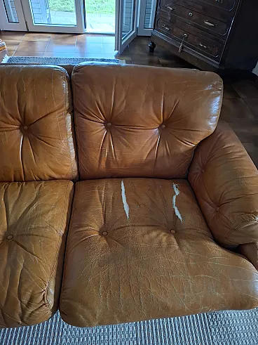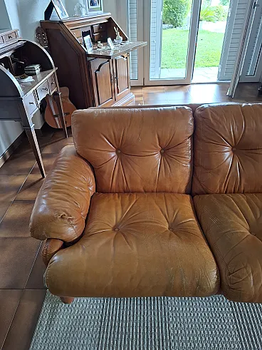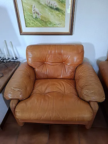 Divano e poltrone Coronado in pelle marrone Tobia Scarpa B&B, '70