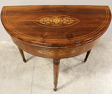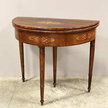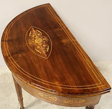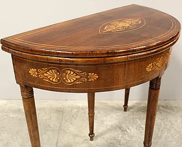 Console tavolino da gioco Carlo X in noce intarsiata '800 Italia