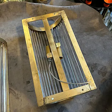 Due lampade da parete italiane in ottone e vetro in stile Sciolari della metà del secolo scorso